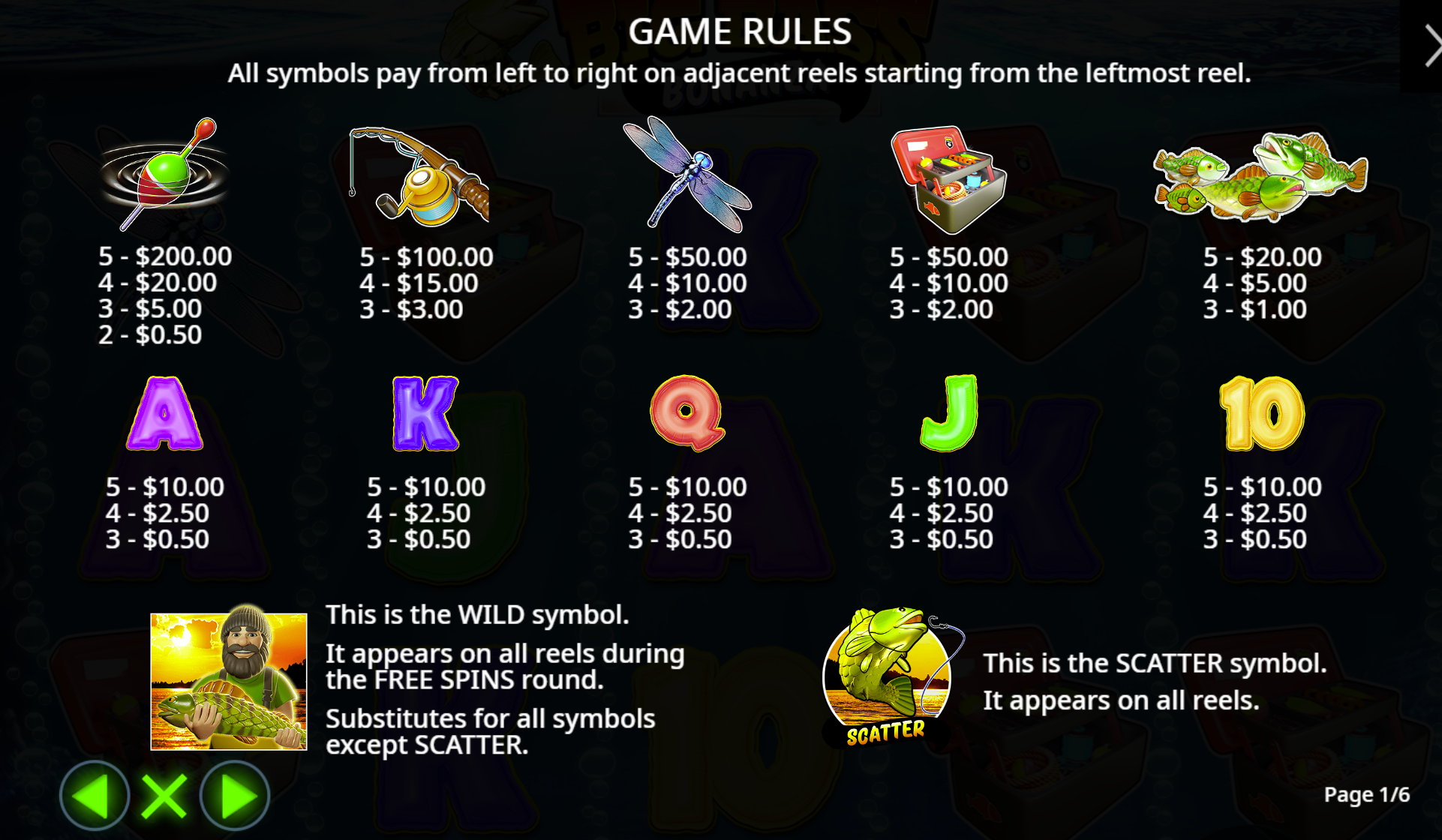 The gameplay is straightforward: each spin covers 5 reels and 3 rows, with 10 fixed paylines always active. Winning combinations occur when matching symbols align on a payline, usually from left to right. The highest-value symbol (often a fishing float or specialized fishing-themed icons) can pay even for just two in a line in some cases, while most other symbols pay for 3-in-a-row or more. :contentReference[oaicite:6]{index=6}